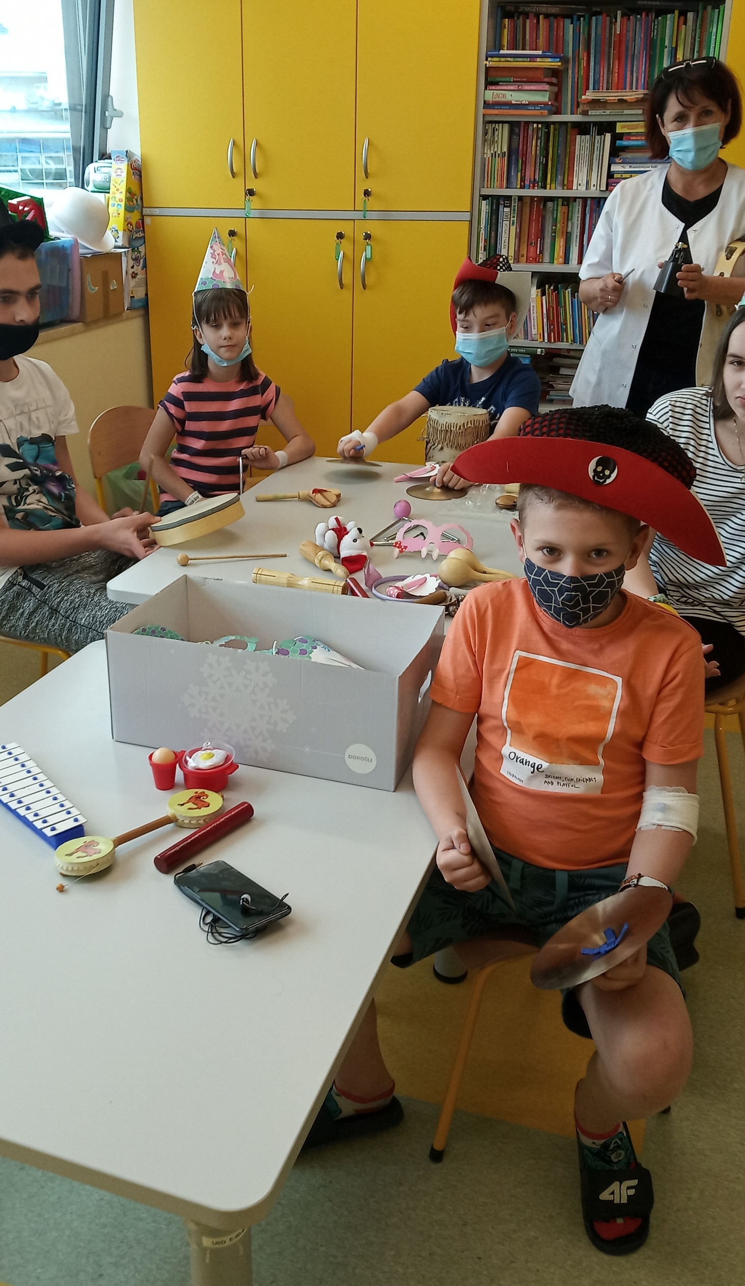 muzyczne, zagadki dźwiękowe, tworzenie muzyki z prostych instrumentów perkusyjnych.