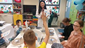 „Savoir – vivre w Polsce i na świecie” to temat pierwszych zajęć, które odbyły się w ramach innowacji pedagogicznej prowadzonej przez zespół nauczycieli zajęć pozalekcyjnych. Wychowankowie zapoznali się z różnymi dziedzinami życia, których dotyczą zasady dobrych manier. Wspólnie przeanalizowaliśmy zasady savoir-vivre’u, które dotyczą przede wszystkim: nakrywania, podawania do stołu, jedzenia oraz picia, wyglądu, prezencji i właściwego ubioru (Dress code), form towarzyskich, komunikacji oraz zachowania się zarówno w szkole, jak i w szczególnych sytuacjach. Uczniowie poznali 25 zasad etykiety, które powinna znać każda dobrze wychowana osoba. Jednak co kraj to obyczaj i w zależności od tego, w której części świata jesteśmy, powinniśmy się stosować do panujących tam zwyczajów. Nie zwracając uwagi na lokalne tradycje, bardzo łatwo można urazić gospodarzy i przez przypadek – okazać brak szacunku. Dlatego też mali pacjenci poznali również 12 zaskakujących zasad etykiety panujących przy stołach całego świata. Podczas części praktycznej wychowankowie nakryli stół oraz rozszyfrowywali mowę sztućców zgodnie z ich ułożeniem. Na koniec wszyscy bezbłędnie poradzili sobie z testem oraz quizem sprawdzającymi wiadomości uczniów na temat zasad savoir- vivre’u.