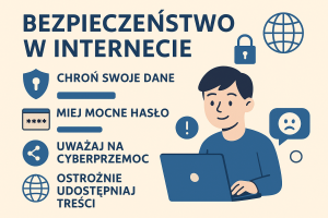 W szkolnym korytarzu pojawiła się tematyczna gazetka przygotowana przez uczniów, przedstawiająca najważniejsze zasady bezpiecznego korzystania z Internetu. Starsi uczniowie stworzyli własne prezentacje w PowerPoincie i Canvie, w których omówili m.in. . ochronę danych, cyberprzemoc, hejt oraz sposoby zabezpieczania urządzeń. Młodsi uczniowie natomiast zapoznali się z przygotowaną przez nauczycielkę informatyki prezentacją dotyczącą podstawowych zasad bezpieczeństwa w sieci.