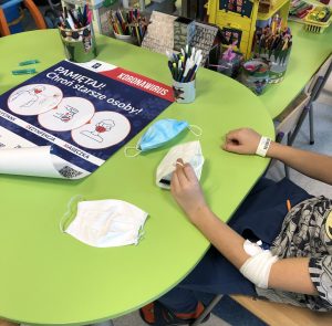 Na koniec zajęć dzieci projektowały własne wzory maseczek , znalazły się na nich kotki, auta i ulubione postacie bajek.
