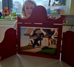 Najmłodsze dzieci, przedszkolaki, obejrzały teatrzyk Kamishibai pt. „O wilku i siedmiu koźlątkach”. Szukaliśmy odpowiedzi na pytanie „Jaki był wilk?”. Razem szukaliśmy współczesnych „wilków” i znaleźliśmy je w Internecie.