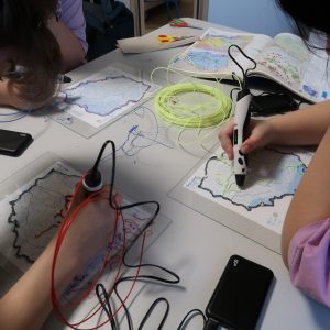 Uczestnicy zajęć podczas pracy wykorzystują długopisy Banach 3D.