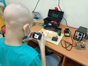 Wykorzystując sprzęt zakupiony w ramach programu #Laboratoria Przyszłości, uczestnicy zajęć zapoznali się z możliwościami gimbala do smartfona oraz aparatu fotograficznego Canon G7X. Urządzenia te posłużyły do dokumentowania naturalnych okazów drzew i krzewów rosnących w przyszpitalnym ogrodzie. Rozwijając własną inwencję twórczą uczniowie robili zdjęcia i nakręcali filmiki. Stały się one doskonałym środkiem zaradczym na rozładowanie napięć związanych z pobytem w szpitalu i procesem leczenia wywołując uśmiech i zadowolenie na twarzach dzieci.