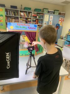 W okresie kolędowym odbyły się kolejne zajęcia w ramach projektu #LaboratoriaPrzyszlości. Dzieci wybierały w jakich strojach chcą wystąpić. Inna grupa, zapoznawała się ze sprzętem audio wideo. Wszyscy uczestnicy zajęć zapoznali się z gimbalem, zakupionym w ramach #LaboratoriaPrzyszlości. Najpierw poznawały jego możliwości, ale i wymagania. Największe zainteresowanie wzbudziła funkcja śledzenia obiektu.