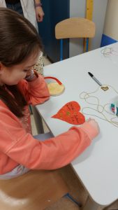 Na lekcji wychowawczej odbyły się zajęcia z wykorzystaniem sprzętu zakupionego w ramach programu Laboratoria Przyszłości – Długopisy Banach 3D. Uczniowie mieli przygotować „Walentynkę”. Wykorzystując innowacyjne możliwości długopisów 3D wykonali prezenty w kształcie serca. Na wstępie wysłuchali instruktażu obsługi sprzętu, a następnie podjęli pierwsze próby pracy z elektrycznymi długopisami. Wykazali się kreatywnością, praca z długopisami Banach 3D była dla nich nowym doświadczeniem. Nauczyli się, w jaki sposób prawidłowo wykorzystać dostępny w szkole sprzęt.