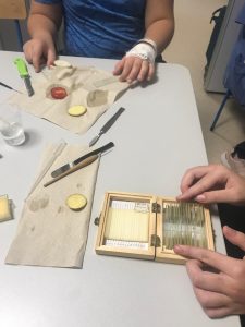 Podczas zajęć uczniowie zgłębiali temat różnic między światem makroskopowym, widocznym gołym okiem, a mikroskopowym, możliwym do poznania dzięki wykorzystaniu mikroskopu. Przypomnieli sobie budowę i zasady działania mikroskopu optycznego, a następnie samodzielnie przygotowywali preparaty z komórek: łuski cebuli, miąższu pomidora, bulwy ziemniaka i obserwowali je pod mikroskopem.