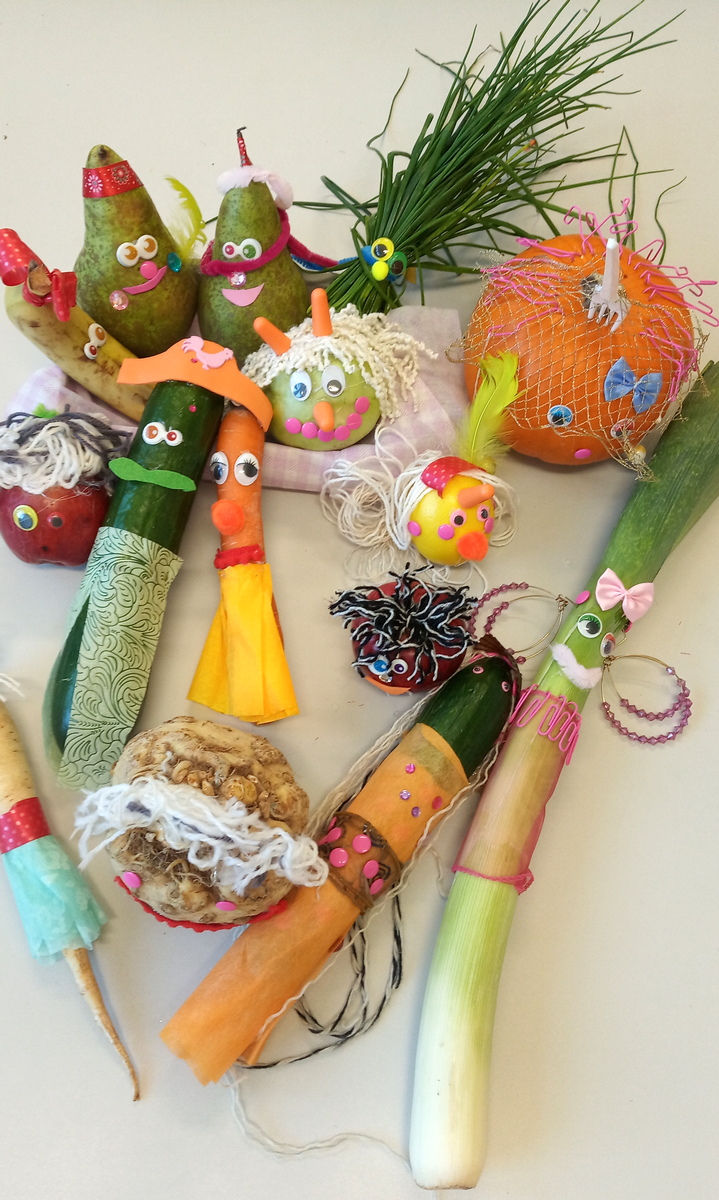 W październiku obchodzony jest Światowy Dzień Owoców i Warzyw. Z tej okazji w salach zabaw odbyły się różnorodne zajęcia edukacyjne. Podczas zajęć uczniowie dowiedzieli się jakie witaminy i wartości odżywcze oraz składniki mineralne zawierają owoce i warzywa. Zajęcia miały na celu zachęcenie dzieci do codziennego jedzenia warzyw i owoców. W trakcie zajęć plastycznych owoce i warzywa w humorystyczny sposób zmieniły się w różne stworki, ludziki i postacie.