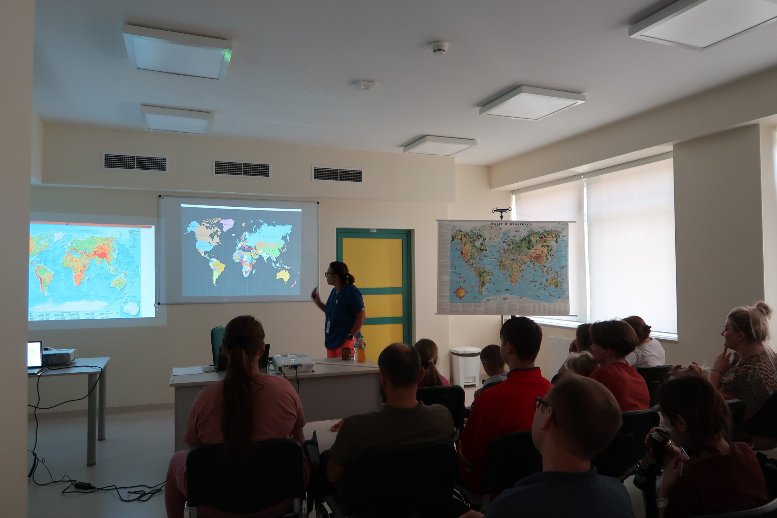 VIII Spotkanie z Podróżnikiem odbyło się w piątek 13 czerwca 2025 r. pod hasłem „podróżnicy są wśród nas”. Tym razem swoimi dokonaniami podzieliła się z uczniami naszej szkoły Pani doktor Klaudia Cierniak-Kożuch – na co dzień ordynatorka oddziału laryngologii w Uniwersyteckim Szpitalu Dziecięcym w Krakowie – Prokocimiu a w czasie wolnym od pracy zdobywczyni Korony Wulkanów Ziemi. Pani doktor wraz z Ewą Wachowicz, są pierwszymi Polkami, które mogą się pochwalić tym zaszczytnym tytułem. Projekt, który zrealizowały zajął im 12 lat, w tym czasie weszły na najwyższe wulkany siedmiu kontynentów.