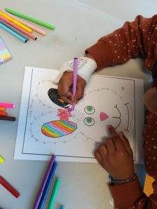 Dnia 12.04.2022r. w naszym przedszkolu dzieci brały udział w zabawach rozwijających myślenie logiczne, zdolności matematyczne oraz spostrzegawczość. Wspólnie liczyliśmy pisanki, szukaliśmy drogi kurczaka do koszyka, odgadywaliśmy gdzie ukrył się zajączek i rozwiązywaliśmy wiele innych, niezwykłych wielkanocnych zagadek. Zwieńczeniem zabaw było wspólne wykonanie świątecznych ozdób.